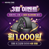 넥센타이어렌탈 정품 시그니처, 최고급형 타이어 4본 렌탈 최대 상품권 5종+18,000원할인까지!